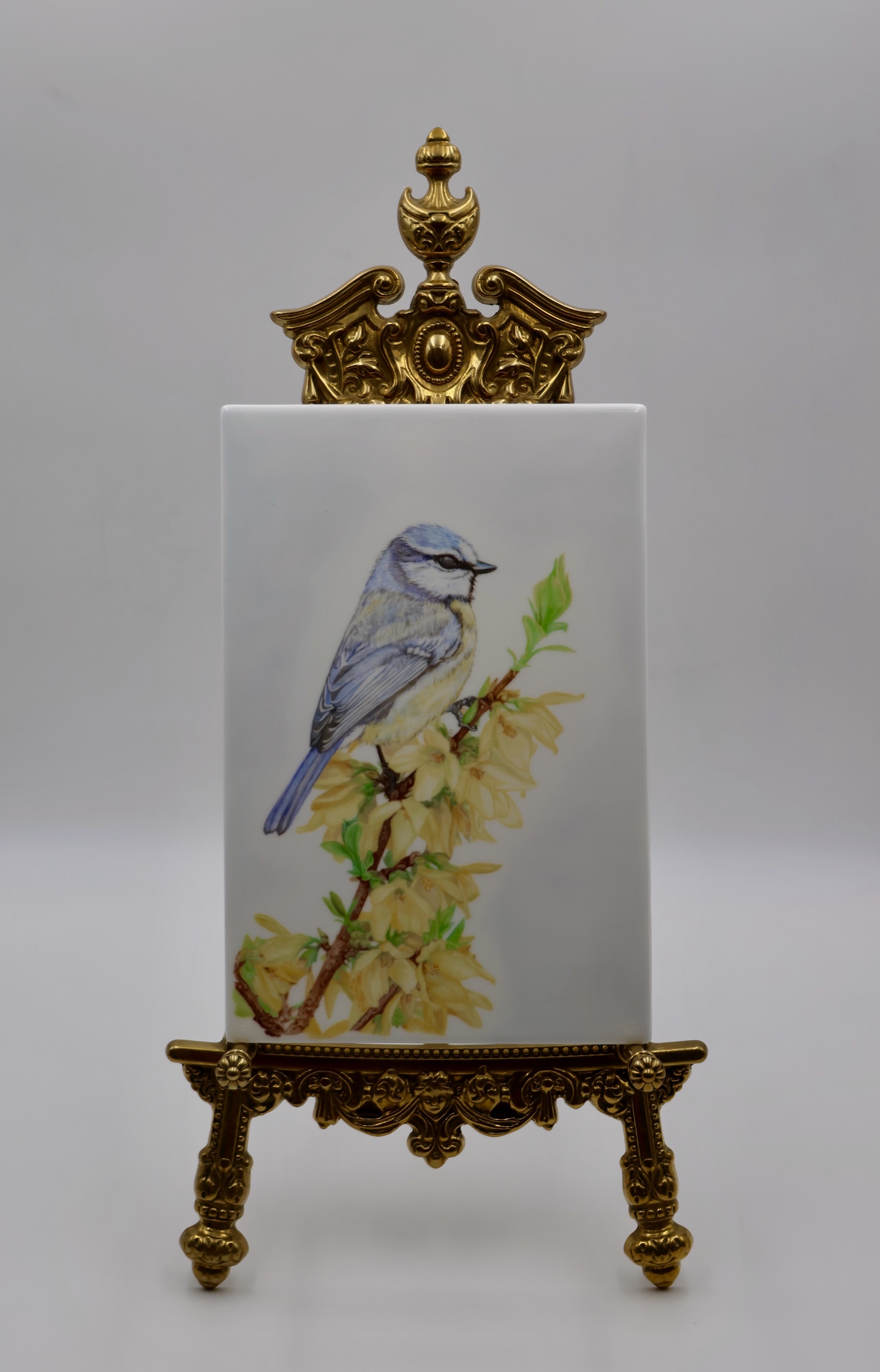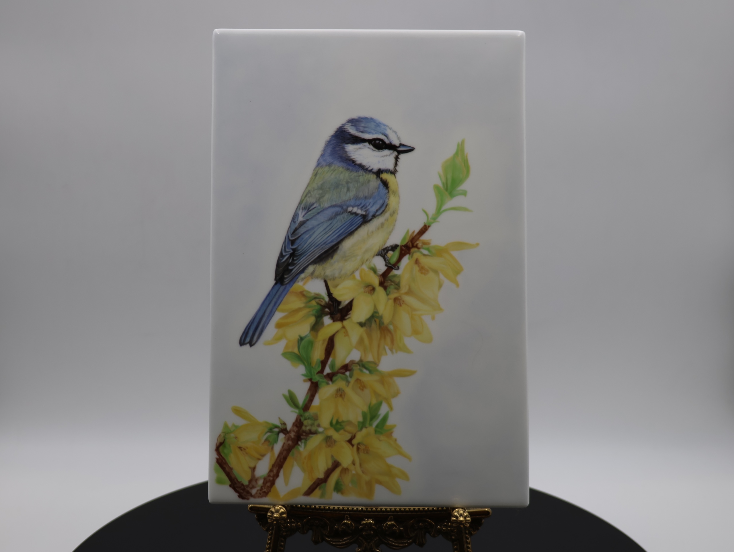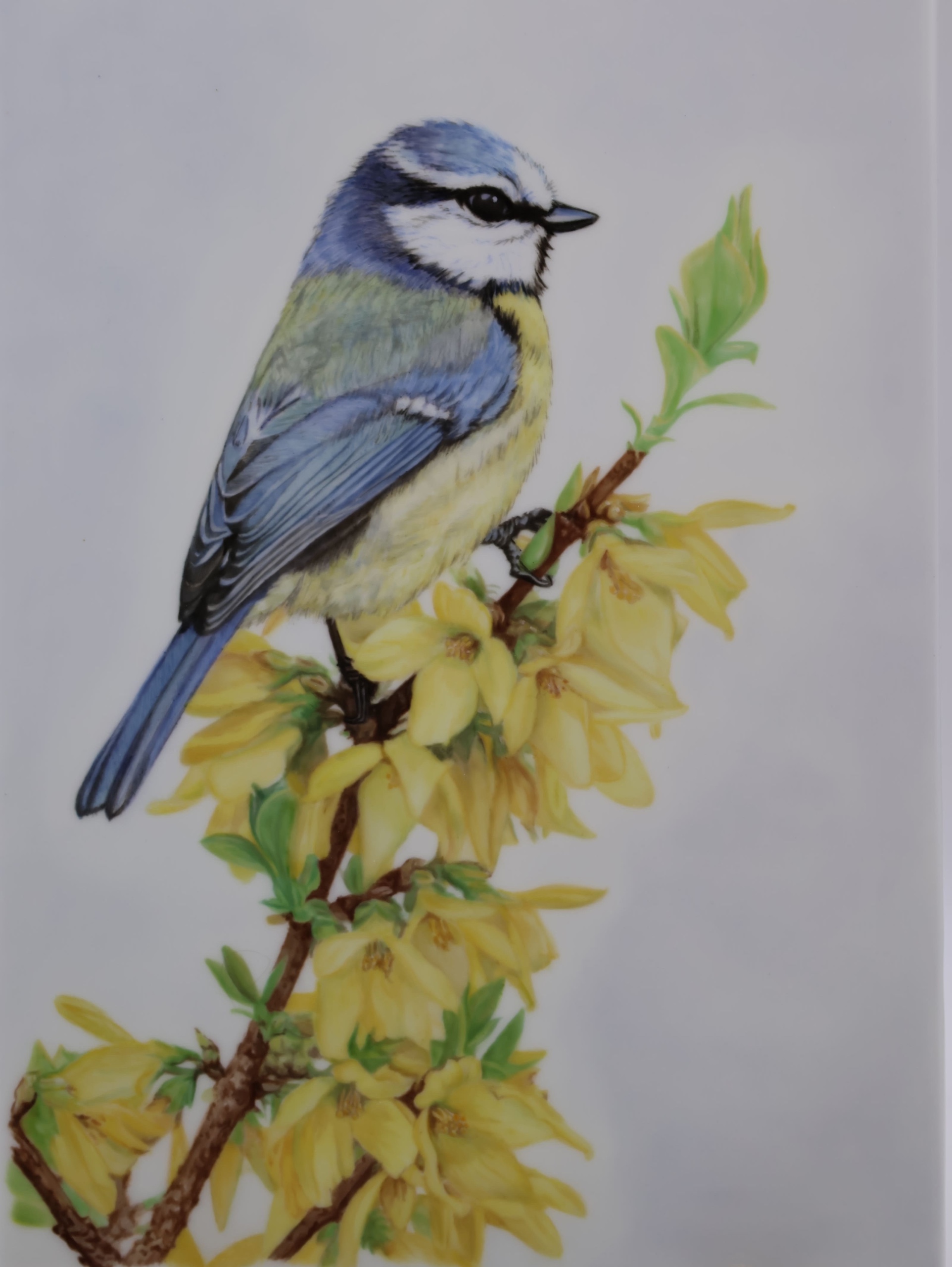 В этой работе я стремилась поймать самый первый, трепетный вдох весны, изобразив лазоревку, чье нежное сине-желтое оперение гармонично перекликается с солнечными цветами форзиции.